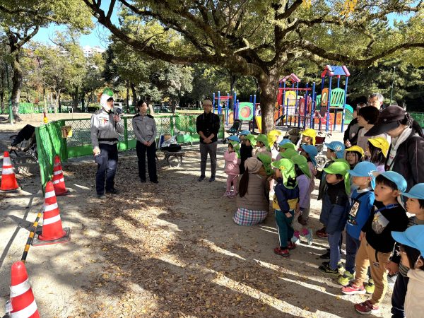 普段からこの公園でたくさん遊んでくれている園児の皆さんが工事によって一部の遊具が使えなくなってしまっていることから、この機会を活かして日頃あまり近くで見ることができない工事を間近で見てもらい、どのように公園が出来上がっていくのかを学んでもらいたいという想いから開催したものです。