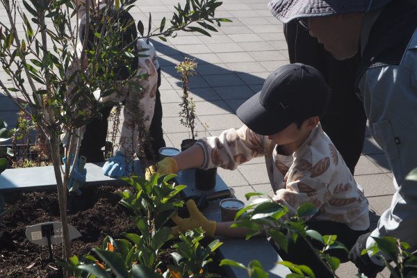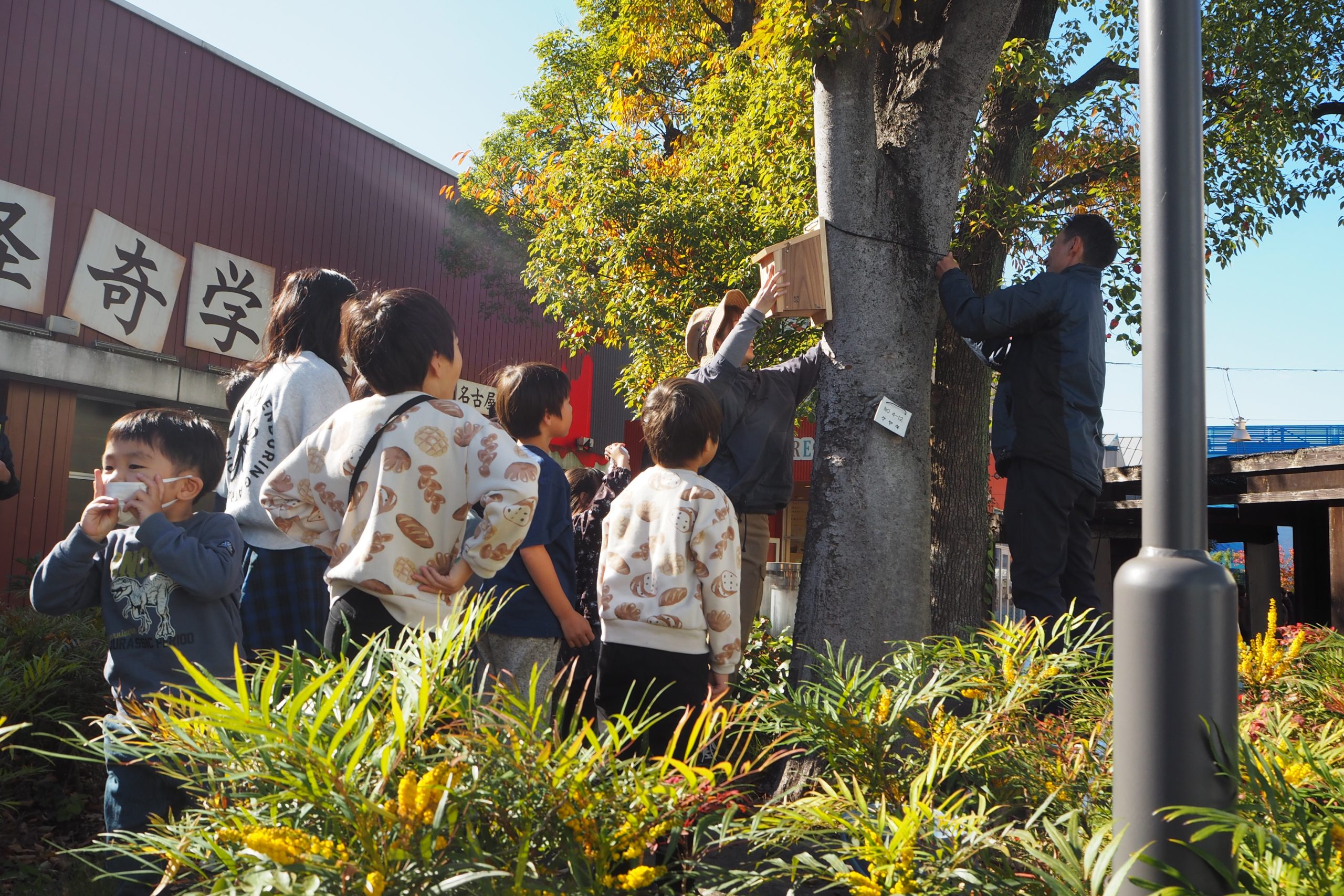 2025年11月22日には矢作グループ役職員とそのご家族の皆さまに、体験プログラムとして花植え体験や鳥の巣箱づくりのイベントを行いました。エスペックミック様による講義に加え、体験を通じて未来の自然を守る大切さに触れていただきました。エコ建築考房様に提供いただいた木材で巣箱をつくり、実際に施設内に設置しました。
