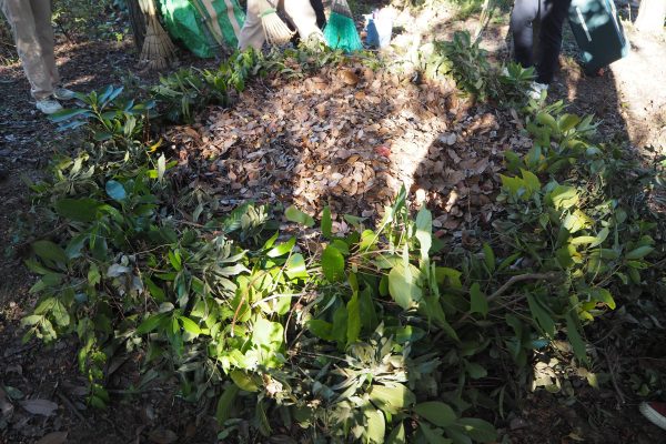 また、同日に運営者で「バイオネスト」と言われる、剪定枝や落ち葉を使ったサステナブルな堆肥づくりを行いました。堆肥の他、昆虫やその幼虫などの生きものが多く発見できると言われています。